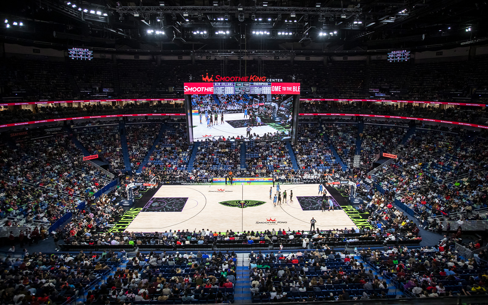 Throughout the season, join us at our Pelicans Happy Hour on select dates. Some of the happy hours will take place either outside the Smoothie King Center (on Dave Dixon Drive) will start 1.5 hours before tip-off. No tickets are required to attend the outdoor event, so bring your friends! Pregame festivities include:
