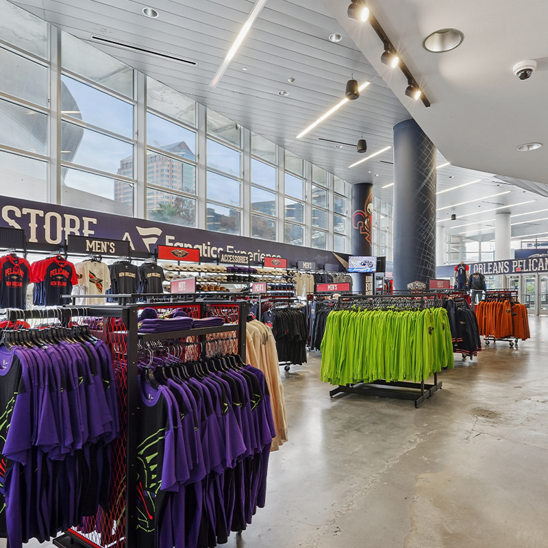 The Official Team Store of the New Orleans Pelicans is located inside the Smoothie King Center with an entrance off of Dave Dixon Drive. The Pelicans Team Store sells official Pelicans merchandise, including the same Nike gear worn by the Pelicans players.
